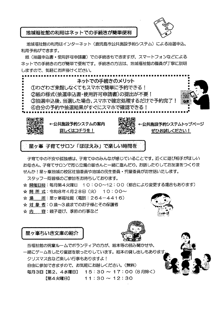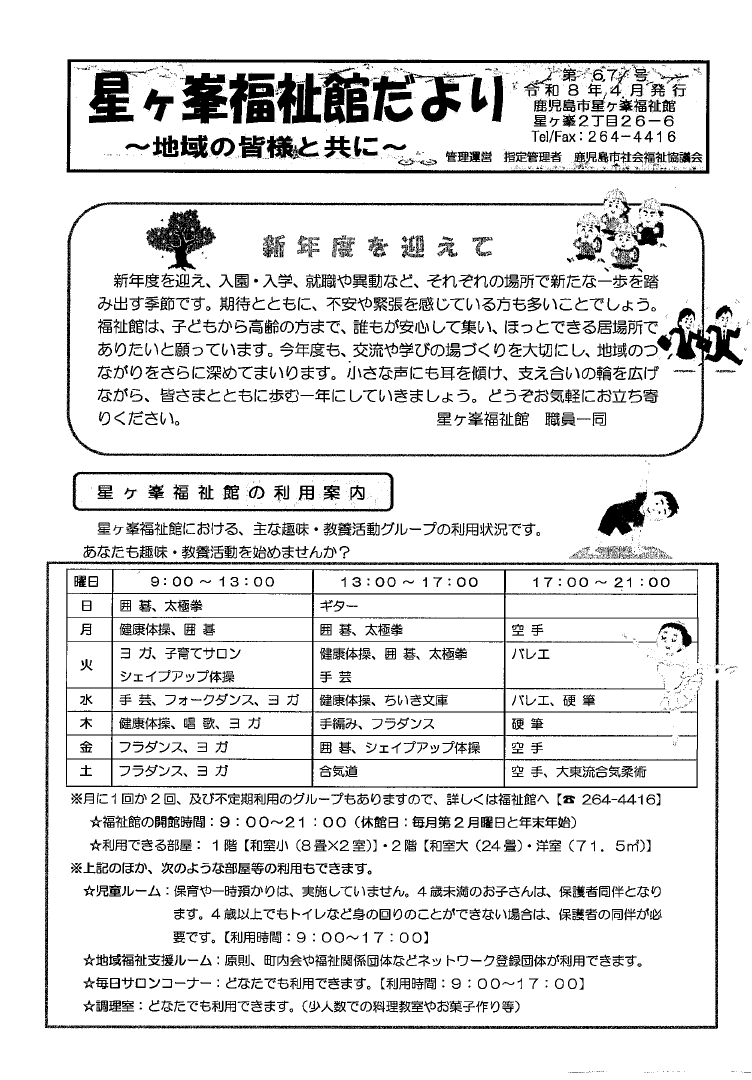 4月の回覧板 2026.4.20 Mon 校区・学校・PTA行事計画表①ダウンロード 校区・学校・PTA行事計画表②ダウンロード 子育てサロンダウンロード 春の全国交通安全運転①ダウンロード 春の全国交通安全運転②ダウンロード 谷山北公民館だより①ダウンロード 谷山北公民館だより②ダウンロード 地域の安全みなみ①ダウンロード 地域の安全みなみ②ダウンロード 福祉館だより①-2ダウンロード 福祉館だより②-2ダウンロード